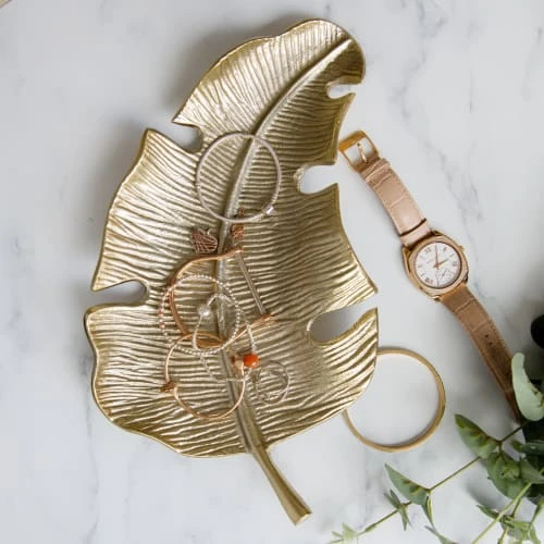 Ajoutez une touche glamour sur la table du dîner avec ce magnifique plat de service doré en forme de feuille. Doté d’une finition dorée scintillante, il est fabriqué en fonte d’aluminium, un matériau durable et léger, facile à transporter de la cuisine au salon. Nettoyez-le à la main après chaque utilisation pour qu’il conserve tout son éclat. Ce plateau mesure 33 x 18,5 x 4 cm : il offre toute la place nécessaire pour servir entrées, tapas, amuse-bouche et petits fours.