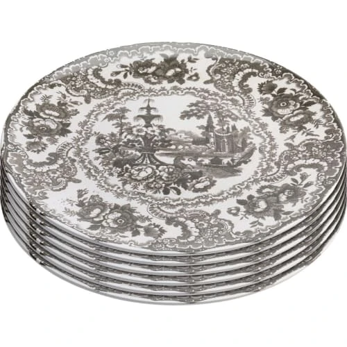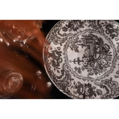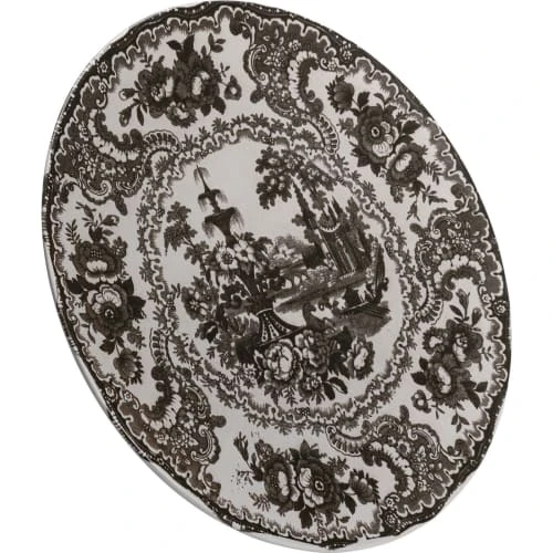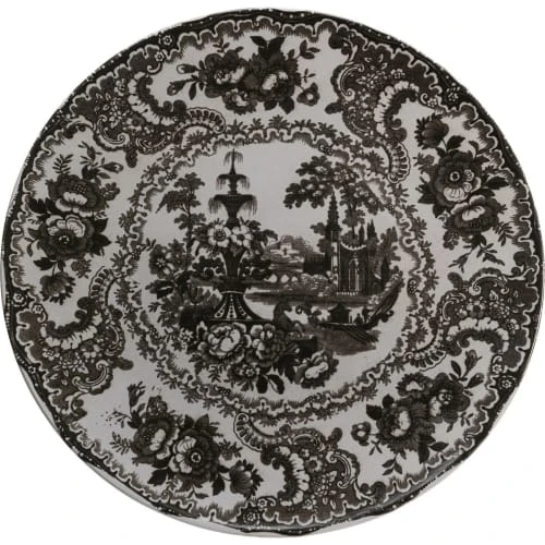 Les assiettes de la gamme Sakura dépeignent un paysage idyllique avec une fontaine devant un palais entouré d’eau. La scène centrale est encadrée de fleurs et d’ornements qui rappellent la dentelle. Adaptées au micro-onde et au lave-vaisselle. Fabriquées au Portugal.