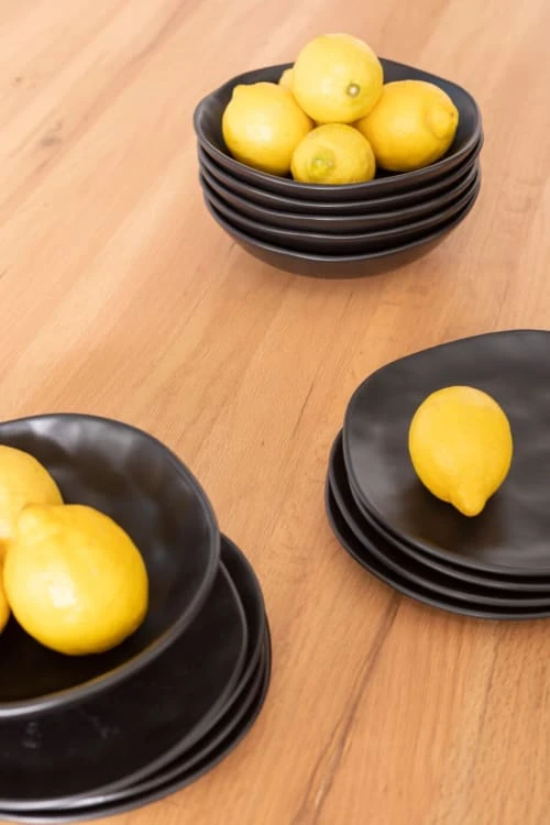 La gamme Organic vous propose une série de bols, mugs et assiettes d’un style contemporain. Avec sa céramique d’un noir profond, elle met en valeur vos repas qui seront d’autant plus appétissants grâce au contraste avec le fond ébène. La surface de cette vaisselle est volontairement irrégulière pour apporter du relief à la surface monochrome. La collection complète est adaptée au micro-ondes et au lave-vaisselle.