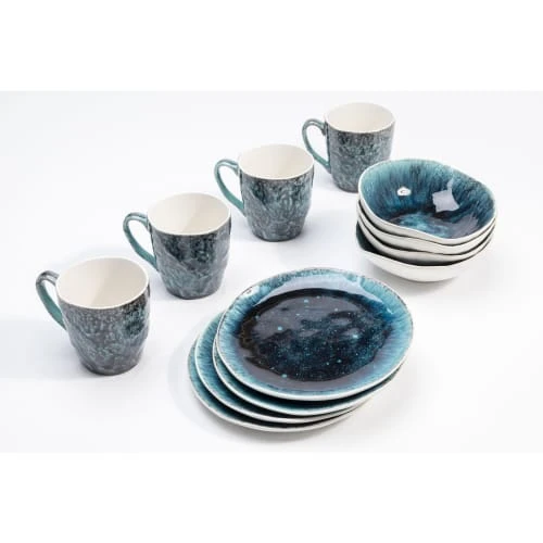 La gamme Mustique vous propose une série de bols, mugs et assiettes. Sa céramique d’un bleu profond tel l’océan vous transporte dans un univers marin et met en avant vos plats colorés. Attention toutefois à ne pas boire la tasse ! La collection complète est adaptée au micro-ondes et au lave-vaisselle. Set de 12 pièces : 4 tasses référence 51242 (11x13x13 cm), 4 assiettes référence 51240 (2x21x21 cm) et 4 assiettes creuses référence 51241 (6x17x17 cm). Adapté au micro-onde. Adapté au lave-vaisselle.