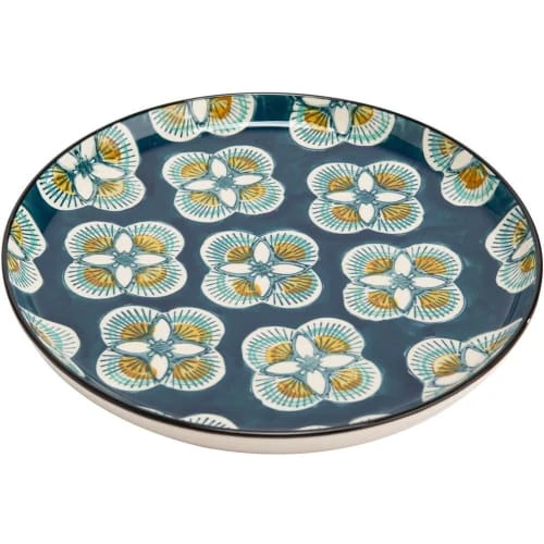 Coloris : bleu foncé Aspect : Coloris = Bleu foncé • Matériau principal = Grès • Dimensions : Diamètre (en cm) = 26 • Hauteur (en cm) = 3 • Autres caractéristiques : Informations complémentaires = Peint à la main – fabrication artisanale , Compatible micro-ondes et lave vaisselle • Poids (en kg) = 0,80 • Assiette plate à motifs Imany